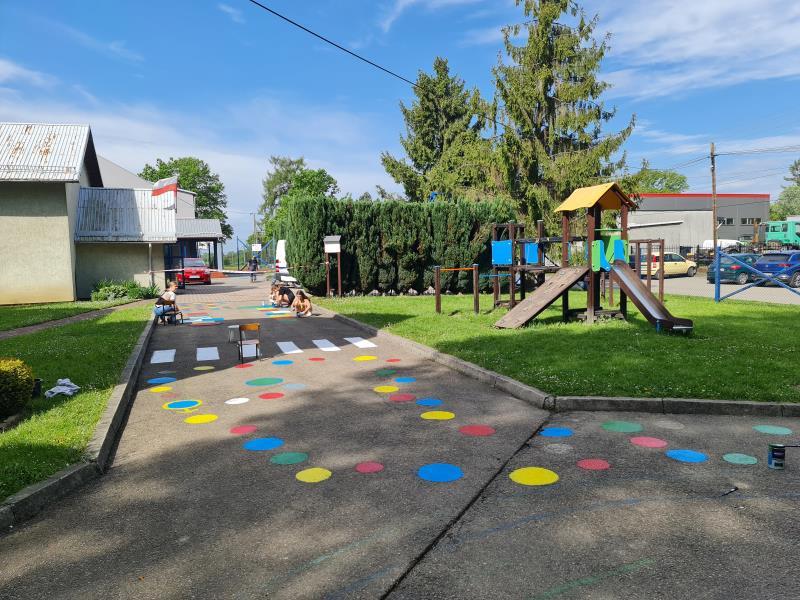 Przy szkole usytuowany jest plac zabaw, a także boisko z bezpieczną nawierzchnią.